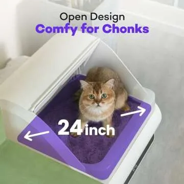 Popur X5 Self-Cleaning Cat Litter Box - Unique Split System, Open Top, 30-Day Capacity - Automatic Litter Scooping Robot, Odor-Seal Disposable Cardboard Bin, 24 Inch Tray, 33 lbs. Load, 99% Leakproof