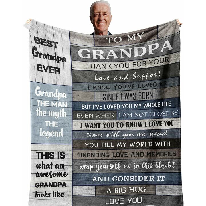 Imagine the joy and unexpected happiness this blanket can bring to your grandpa. Wrapped in the warm embrace of this gift, every glance at the comforting words will remind him of the special bond you share. It’s not just a blanket; it’s a hug, a memory, and an emblem of your love.