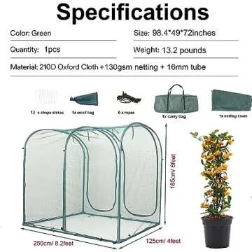 With dimensions of 8.2 feet long, 4 feet wide, and 6 feet high, this plant cover offers ample space for various crops—perfect for accommodating tall vegetables like loofah, cucumbers, and grapes. Weighing only 13.2 pounds, the tent is conveniently portable, fitting easily into a 90cm carry bag. Ideal for gardeners on the go!