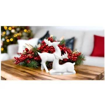 Show more Transform your holiday décor into a winter wonderland with the enchanting Tabletop Christmas Reindeer. Crafted with meticulous attention to detail, this stunning ceramic figurine features a pure white finish that radiates elegance and warmth. The delicate craftsmanship ensures a solid structure that stands the test of time, making it not only a beautiful decoration but also an eco-friendly choice for your home.