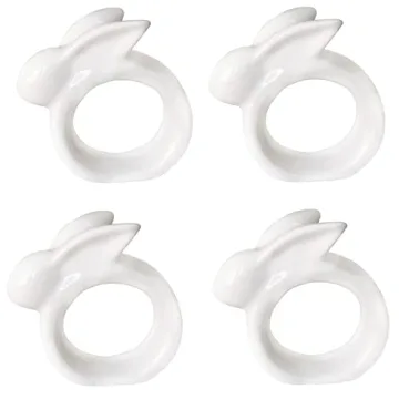 Porcelain Rabbit Napkin Rings - Easter Bunny Napkin Rings Holder, Easter Cloth Easter Plates Napkin Rings Dinning Room Table Decor, Set of 4 Vintage White Bunnies Napkin Rings Holder