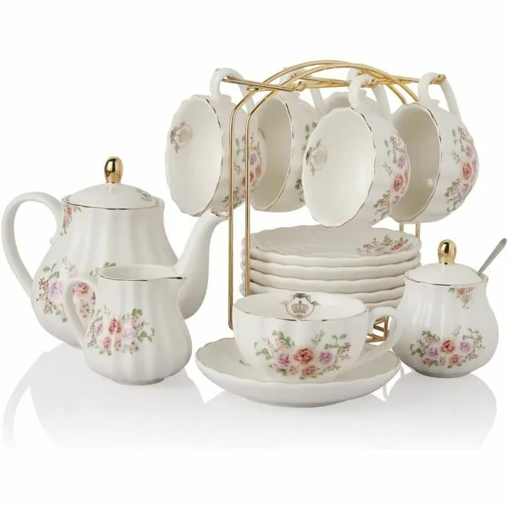 Compared to other tea sets on the market, this porcelain tea set offers superior quality, larger cup sizes, and an elegant design that stands out. The combination of aesthetics, durability, and functionality makes it a fantastic value for its price, often prompting customers to purchase additional sets or recommend them as gifts.