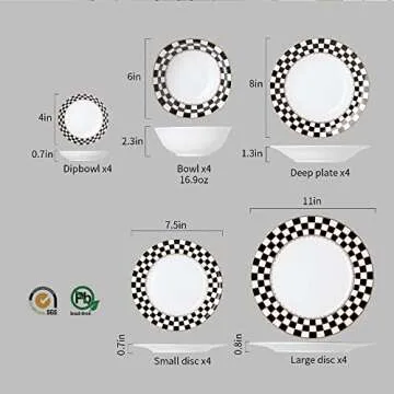 Porlien Checker Pattern 20-piece Round Dinnerware Set for 4, Bone China