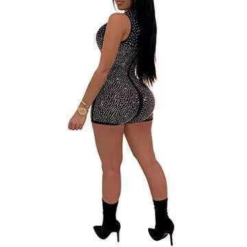 PORRCEY Women Sexy Tights Hot Drilling Rhinestone Jumpsuit Party Club Night Romper (3202,Black,S)