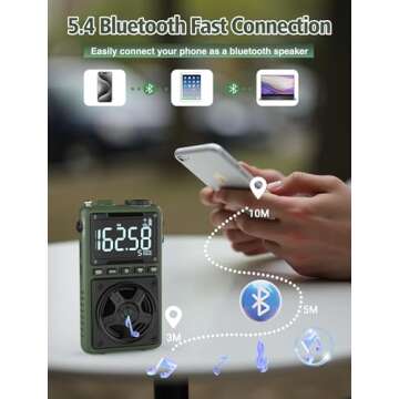 Portable AM FM Shortwave Radio with Bluetooth 5.4,NOAA Weather Alert Radio,1250mAh Rechargeable Portable Pocket Radio with Best Reception,5W Big Speaker, Digital Tuner and Earphone,SD Card Playing