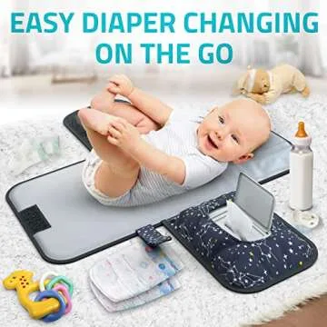 Portable Baby Diaper Changing Pad - w/Soft Built-in Pillow & Strap for Strollers - Comfortable, Lightweight & Waterproof - Made with Premium Materials - Great for Newborn Girls & Boys & for Travel