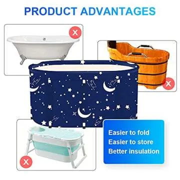 Portable Bathtub For Adults Folding Soaking Bath Tub Thickening To Keep Temperature Foldable freestanding bathtub For Shower Stall Suitable For Two Persons 43"x 25"x 20"(Blue Sky)