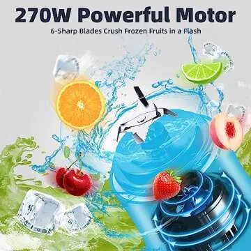 Show more Unleash your inner chef with the BOSICTE Portable Blender, a powerful and stylish solution to all your blending needs! Packed with a robust 270W motor, this innovative blender features 6 sharp stainless steel blades that effortlessly crush ice cubes, frozen fruits, and vegetables to create delicious smoothies and milkshakes in just 30 seconds. Imagine starting your day with a nutritious drink tailored to your taste!