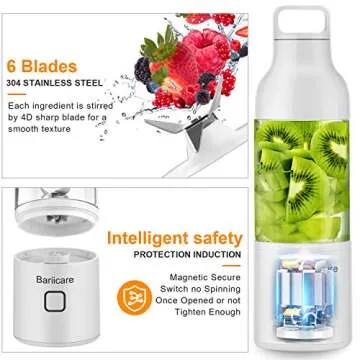Portable Blender, [Updated 2020 Version] Bariicare Smoothie Blender with 4 Blades, 20 oz Travel Fruit Mixer Machine, 4000 mAh USB Rechargeable Ice Blender Mixer for Home, Office, Sports, Outdoors