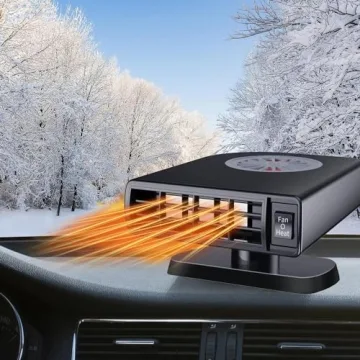 Show more Discover the ultimate solution to winter driving woes with our powerful and efficient Car Heater Defroster. This compact yet mighty device is engineered to quickly clear your windshield of frost and fog in just seconds, ensuring your car is safe and comfortable right from the start. With its innovative design featuring a heating and cooling mode, you can switch from warming your car to cooling it during hot summer days effortlessly. You'll no longer have to endure those frustrating mornings struggling to see through icy glass!