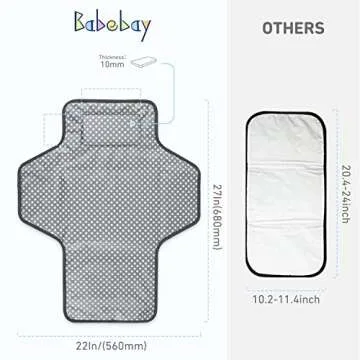Show more Introducing the ultimate Portable Baby Changing Pad, designed for modern parents who need convenience on-the-go. This essential baby gear from a trusted brand offers an extra-long and wide active space, measuring approximately 27x22 inches, ensuring your little one has ample room during diaper changes.