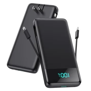Portable Charger for iPhone with Built-in Cables and Wall Plug