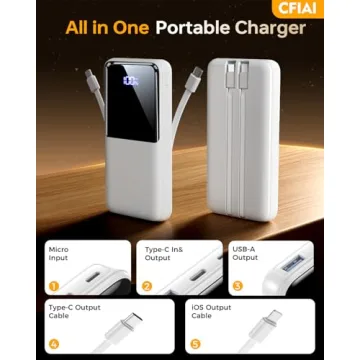 Portable Charger Power Bank - 15,000mAh Battery Pack Portable Phone Charger with Built in Cable 22.5W Fast Charging Powerbank Compatible with iPhone Android Samsung Phone, Travel Camping Essential