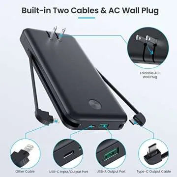 AONIMI 13800mAh Portable Charger with Built-in Cables & AC Wall Plug, Perfect for iPhone & Android Users