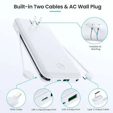 Portable Charger with Built-in Cables & AC Wall Plug,Ultra Slim 13800mAh USB-C Power Bank,4 Output 2 Input LCD Display External Battery Pack Phone Charger Compatible with iPhone Samsung Android-White