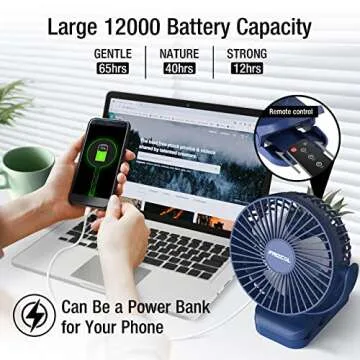 - 12000mAh Rechargeable Battery: Enjoy extended usage times from 12 to 65 hours based on fan speed settings.
