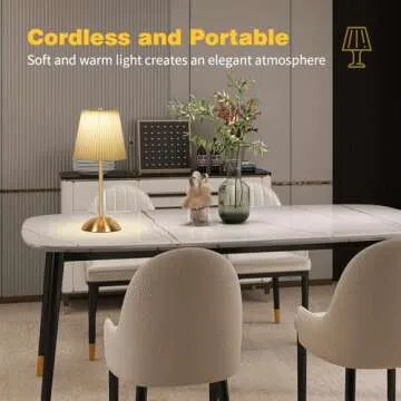 Portable Cordless Table Lamp, Fabric Shade Desk Lamps, 3000mAh Rechargeable Battery Operated Light, 3Color Dimmable Touch Lamp for Dining Room, Living Room, Bedroom, Bedside, Kitchen, Bathroom (Brass)