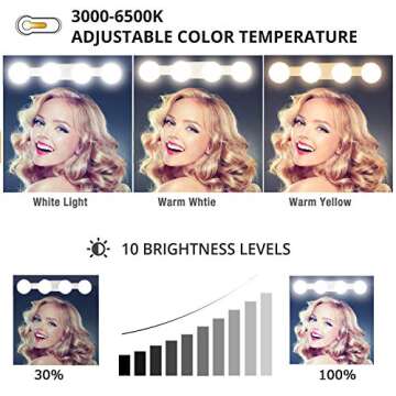 Portable LED Makeup Lights, 2000mha Rechargeable Vanity Mirror Lights kit with 4 Hollywood Styles Bulb for Bathroom Dressing Room Vanity Table
