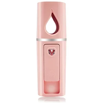 Portable Nano Facial Mister Mini Facial Steamer Atomization Eyelash Extensions with Mirror & 20ml Visual Water Tank (Pink)