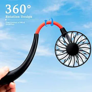 Portable Neck Fan Rechargeable Personal Hand-Free Fan Mini USB Wearable Neckband Sport Fan, 3 Speed Adjustable, 360 Degrees Free Rotation Perfect for Working, Traveling, Office, Reading (Black)
