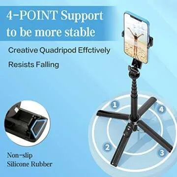 Introducing the ultimate Portable Phone Tripod & Selfie Stick—a versatile solution for capturing every moment, whether you're out adventuring or simply enjoying a day with friends. Designed for compatibility with iPhone 14/13/12/11 and a wide range of Android phones, this travel tripod ensures amazing flexibility for smartphone photography enthusiasts. With four support legs and a tripod base, it delivers remarkable stability, which means...