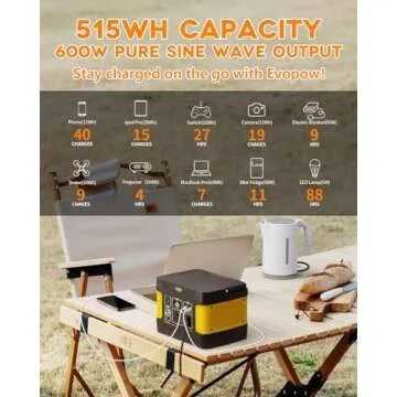 Portable Power Station 600W Evopow, 515Wh Backup LiFePO4 Battery, 110V Pure Sine Wave AC Outlets, USB Ports, DC Ports, Solar Generator for CAPA Camping Outdoors Home Blackout