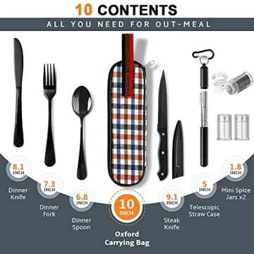 Portable Travel Utensils Set, Travel Camping Cutlery Set, Reusable Stainless Steel Flatware Set with Case for Office School Picnic (Black)