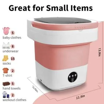 Designed for convenience and portability, this mini washer boasts a cute and clever folding design, measuring just 13.9x11.9x11.9 inches when in use and compressing to a mere 11.9x11.9x5.9 inches when folded. It can seamlessly fit under any bed or between shelving units, ensuring it occupies minimal space.