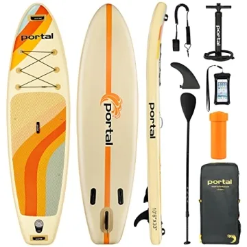 Show more Introducing the Portal SUP Inflatable Paddle Board, a stellar addition to your water sports arsenal! Designed in the USA, this 10’6" long and 33" wide paddle board delivers an unmatched experience of stability and balance, making it the perfect choice for users of all skill levels, from absolute beginners to seasoned paddlers. With a remarkable depth of 6 inches, it supports a weight capacity of up to 300lbs, allowing you to explore rivers, lakes, or the ocean with ease. Whether you’re interested in fishing, yoga, or a leisurely paddle, the Portal SUP is versatile enough to cater to your aquatic adventures.