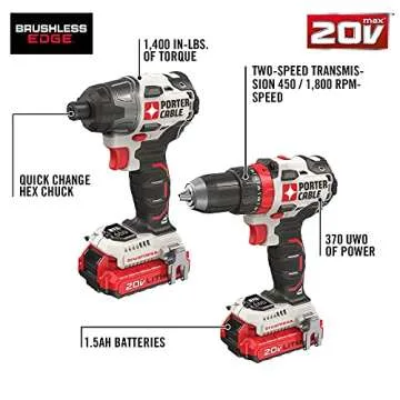 PORTER-CABLE 20V MAX Cordless Drill and Impact Driver, Power Tool Combo Kit with 2 Batteries and Charger (PCCK619L2)