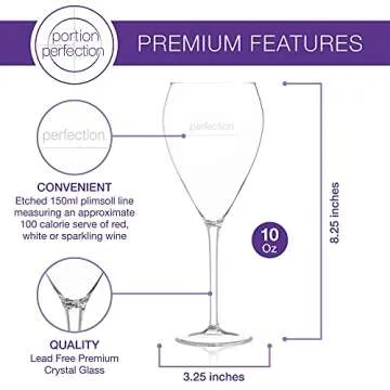 Portion Control Wine Glass, Set of 2, Elegant Hand Blown Italian Style Lead-Free Premium Crystal Glass 10oz, with 5oz 100 Calorie Measurement Etched Line for Red, White, Rose or Sparkling Wine