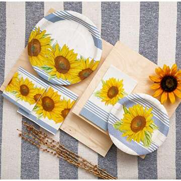 The vibrant sunflower design paired with elegant blue stripes adds a touch of summer charm to any picnic, cookout, or beach day. Whether you're hosting a birthday party or a bridal shower, these plates will match beautifully with your decor, as noted in our positive customer reviews. Your guests will love the aesthetic appeal, and you'll appreciate how these plates seamlessly integrate into your party theme.
