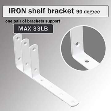 PortPlugs Shelf Brackets 8pcs Corner Brace White Steel L Brackets for Shelves 5 Inch x 3 Inch Decorative Corner Brackets for Wall Joint Angle Brackets for Shelf with Screws (white-3x5 inch-8pcs)