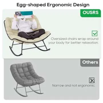 Show moreThe **PORWEY Patio Rocking Papasan Chair** is a stunning fusion of design and comfort, crafted to be the ultimate addition to your indoor or outdoor space. Measuring an impressive **39.4" D x 37.8" W x 31.5" H**, this oversized rocking egg chair is robust enough to accommodate adults comfortably, allowing you to fully embrace its gentle, rocking motion. Designed to provide a wraparound cocoon feeling, the chair rocks smoothly back and forth at a **30° angle**, ensuring an idyllic spot for relaxation, whether you're curling up with a book, watching a movie, or taking a soothing nap. Its unique egg shape not only catches the eye but cradles your body, providing exceptional support and a luxurious seating experience.