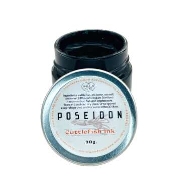 Poseidon Cuttlefish Squid Ink, Tinta Calamar, Nero di seppia, 90g / 3.2 oz ea jar from Sardinia Italy