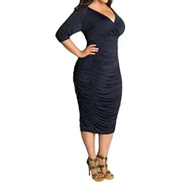 POSESHE Womens Plus Size Deep V Neck Wrap Ruched Waisted Bodycon Party Dress (Large, Black)