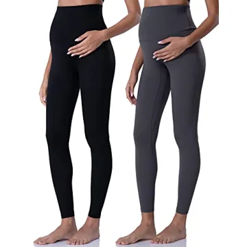 POSHDIVAH 2Pcs Maternity Leggings - Over Belly Yoga Pants for Comfort & Style