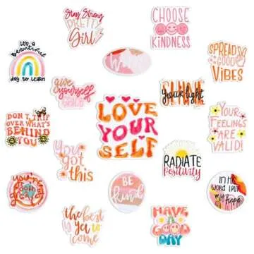 Show more Discover the joy of self-expression with these vibrant 17 Pieces Positive Patches. Each set is designed to infuse your wardrobe with a dose of positivity, featuring eye-catching colors and inspiring messages that remind you to love yourself and embrace your feelings. These patches are not just decorations; they are daily affirmations in the form of adorable designs that can resonate with anyone looking to uplift their mood.