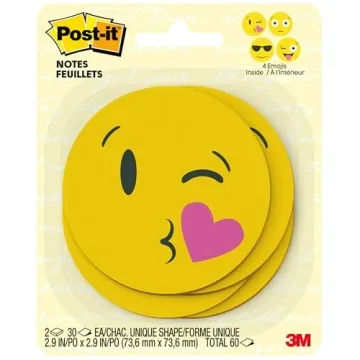 Show more Introducing the Post-it Printed Notes with Emoji Designs, your ultimate companion for adding a splash of personality to your organization tasks! Measuring at a compact size of 2.9 x 2.9 inches, these vibrant sticky notes are perfect for anyone looking to make their reminders more fun and engaging. Adorned with an assortment of lively emojis, they make for a delightful addition to your workspace, school, or home, transforming ordinary messages into cheerful interactions that brighten your day.