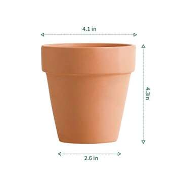 POTEY 020161 Terracotta Flower Pot Terra Cotta Clay Planter - 4.1 Inch with Drain Hole for Succulent Cactus - Set of 6, Unglazed