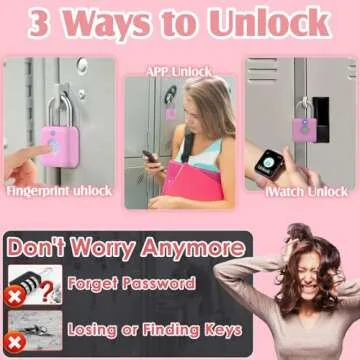 Pothunder Fingerprint Padlock, Locker Lock, Combination Lock, Fingerprint Lock with APP Unlock, USB Rechargeable, Suitable for Gym Locker, Door, Locker
