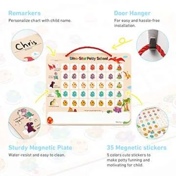 The clear, step-by-step **3 Instruction Steps** guide makes it simple for parents to implement the chart into their potty training regimen. This sturdy chart can be easily hung anywhere in the house, encouraging interest and prompting your child to take ownership of their progress while enjoying the vibrant visuals that the dino theme brings into their potty training journey.