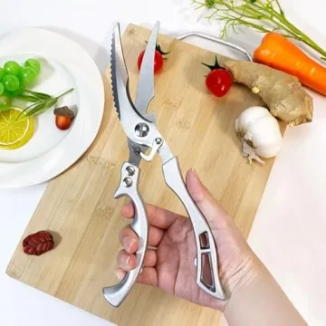 Introducing the Poultry Shears Heavy Duty—a multi-functional kitchen essential that revolutionizes your cooking experiences. Crafted from high-quality stainless steel, these shears promise unmatched sturdiness and durability, ensuring they remain sharp even after countless cuts through chicken bones, meat, and more. Designed with your comfort and safety in mind, the handles are inspired by the unique structure of shark fins, providing an ergonomic grip that feels natural...