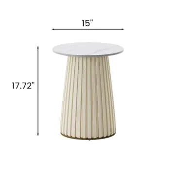 POVISON 15" Modern Side Table Living Room with Sintered Stone Top, Versatile Round End Table as Coffee Table, Drink Table, Bedside Table, Bed Side Table, Sofa Table for Home Office