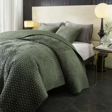 Powdion Velvet Quilt King Size, Oversized Bedspread Quilted Bedding Set, Luxurious Soft Coverlet Set Lightweight Velvet Comforter for All Season with 2 Pillow Shams, Army Green Striped Quilt Set