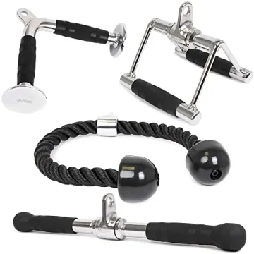 Show moreIntroducing the POWER GUIDANCE Triceps Pull Down Attachment, a game-changing addition to your home fitness arsenal. Designed for those serious about sculpting their bodies, this premium cable machine accessory enhances your workout experience by targeting multiple muscle groups effectively, including the triceps, lats, back, and deltoids. With a robust construction using high-quality solid steel, you can trust in its durability to handle your most intense workout sessions without faltering. The inclusive set consists of a versatile V-shaped bar, a rotating V handle, a straight rotating bar, and a heavy-duty nylon braided triceps rope, ensuring you have the right tool for every exercise you wish to perform.
