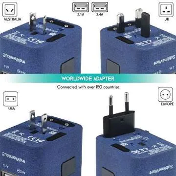 Show more If you're looking for the ultimate solution to your international travel charging needs, look no further than this innovative 4-Port USB Power Travel Adapter. Designed to work seamlessly in over 150 countries, including the US, UK, EU, and China, this all-in-one charger eliminates the hassle of dealing with multiple adapters. No longer do you have to worry about losing pieces or fumbling with complicated connectors; this compact and sturdy adapter is ready to simplify your travels.