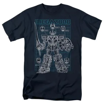 Power Rangers Megazord Mega Plans Unisex Adult T Shirt (X-Large) Navy