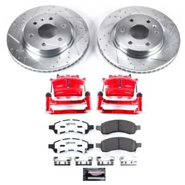 Power Stop KC3167A-36 Front Z36 Truck and Tow Brake Pads with Drilled and Slotted Rotors Kit and Calipers For 2012 2013 2014 2015 2016 2017 2018 2019 2020 Ford F-150 Pickup [6 Lug Models]