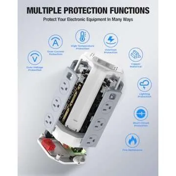 Power Strip Surge Protector, 10 Ft Extension Cord with 12 AC Multiple Outlets 4 USB (1 USB C), SMALLRT Power Tower Desktop Charging Station, Home Dorm Room Office Essentials, Desk Accessories White